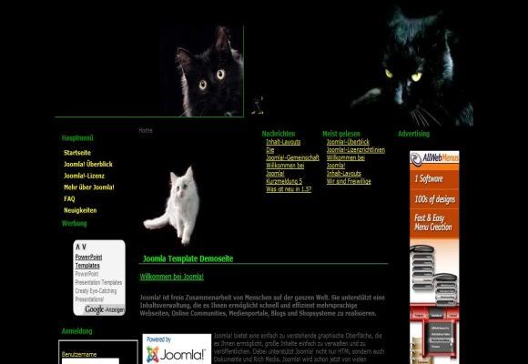 Free Joomla Black Cats Shop Web2.0 Theme Template, Web2.0 Template for Joomla 1.5, High quality Design, This Theme come with 3 columns, Dark Black Colors, Adsense Ready and fixed width, this Theme is Suitable For Cats and Animals Joomla Websites or Cats Shop Store Website. Joomla 1.5 Template